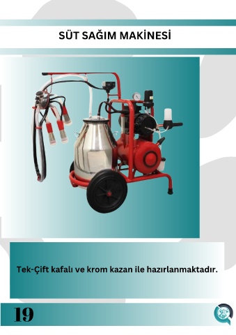 SÜT SAĞIM MAKİNESİ Tek-Ç ft kafalı ve krom kazan le hazırlanmaktadır. 19